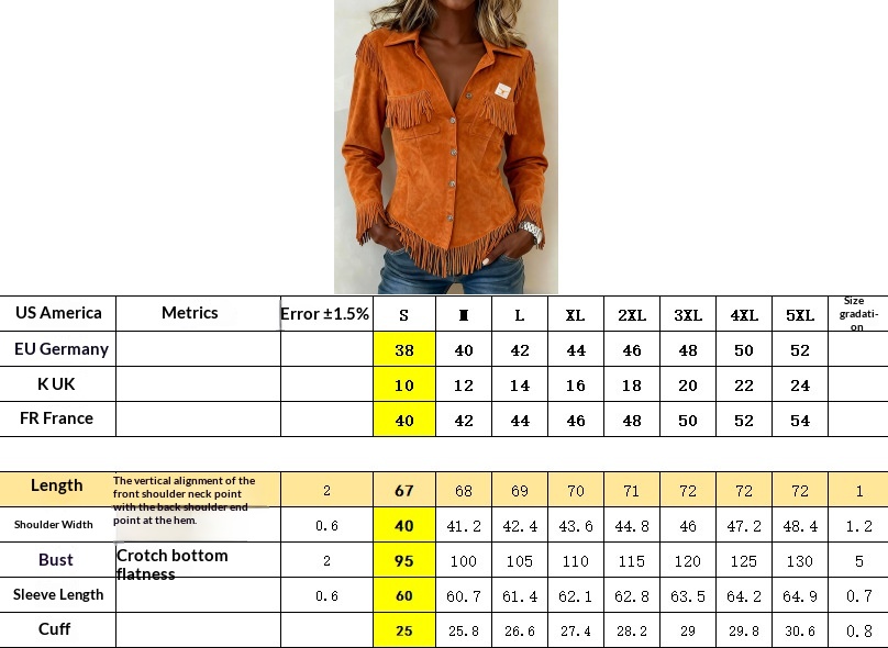 Brown European And American-style Suede-velvet Cardigan With Tassels And Long Sleeves